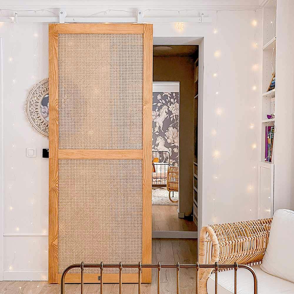 Une combinaison de bois massif et de tresse de rotin faite à la main. Structure légère de la porte, design moderne et système coulissant silencieux. La collection Rattan est une composition de matières naturelles et de couleurs subtiles qui apportent chaleur et légèreté subtile à l'intérieur. Ajoutez du caractère naturel et du style à votre espace.