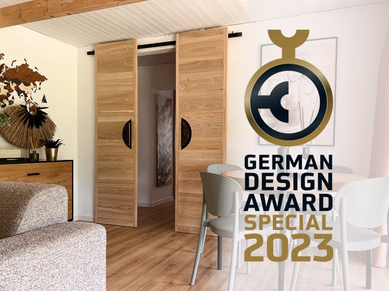 Le modèle de porte Minimalist a reçu la mention spéciale 2023 dans le cadre du prestigieux concours German Design Award dans la catégorie Excellent Product Design (Furniture). C'est une marque d'excellence pour un design innovant basé sur leur qualité.