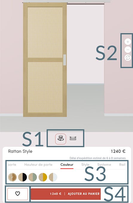4. Les éléments que vous pouvez modifier varient en fonction du modèle que vous choisissez (Section S3). Dans le cas des portes Rattan, ce seront :