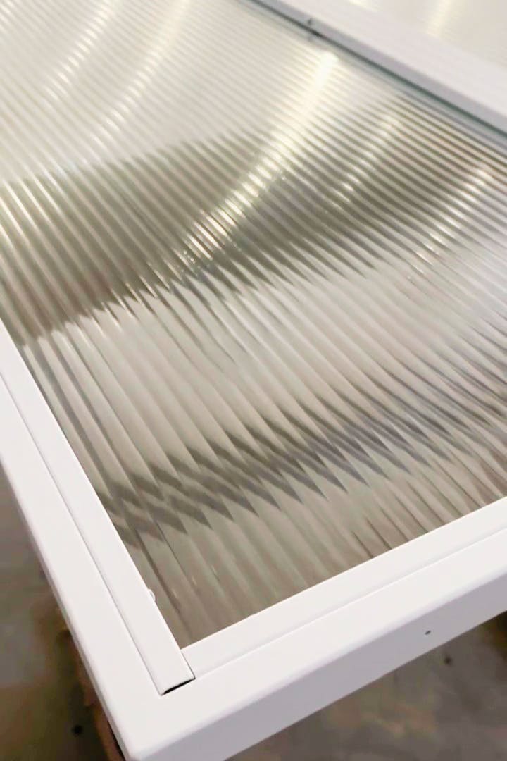 Vous trouverez du verre cannelé dans nos portes coulissantes, en particulier celles de style industriel.