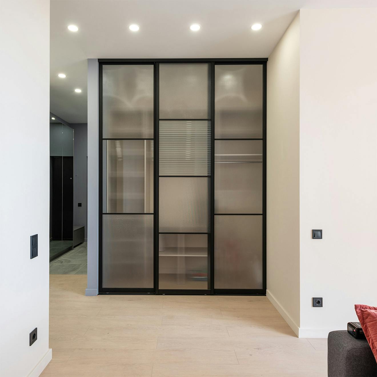 Les intérieurs industriels utilisent volontiers des matériaux bruts, simples et naturels tels que le métal, le béton, le verre ou le bois. Le verre cannelé s'inscrit parfaitement dans l'esthétique industrielle ou loft avec sa structure inhabituelle, mais très brute et équilibrée. Nous aimons le verre cannelé pour le jeu magique de la lumière et le peu d'intimité qu'il apporte dans les maisons. Si vous souhaitez embellir votre intérieur, n'hésitez pas à nous écrire - nous vous aiderons à choisir la porte coulissante idéale !