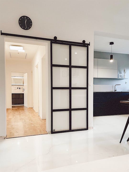 Une perceuse et deux mains utiles sont tout ce dont vous avez besoin. Le cadre en métal a des cintres intégrés, donc pour installer des portes à un vantail de 90 cm, il vous suffit de percer 4 trous dans le mur. Notre manuel vous guidera pas à pas et bientôt vous admirerez votre chef-d'œuvre !